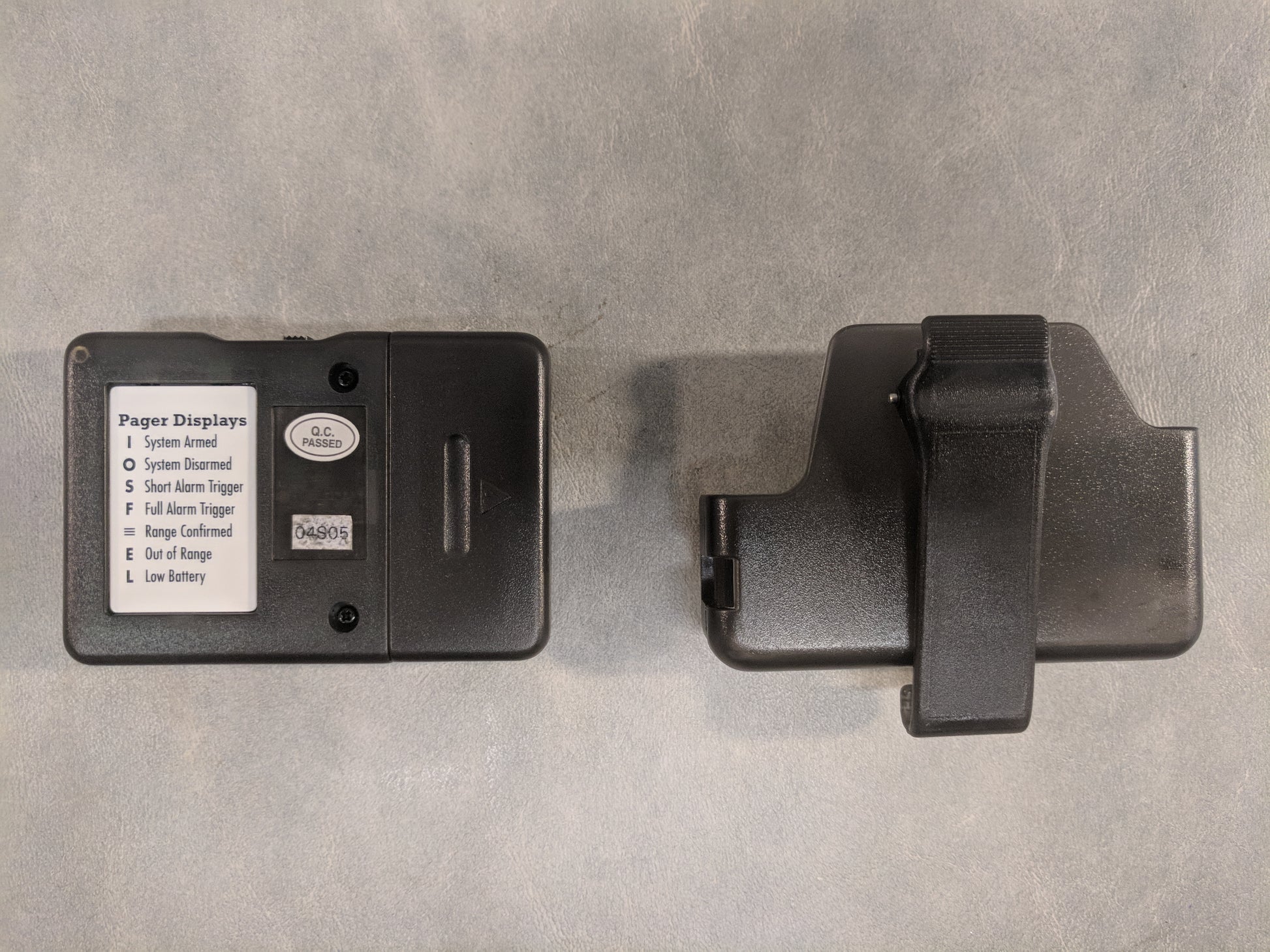The HD security system pager with range confirmation signal offers advanced paging surveillance. The pager monitors the security system operation and can display unique codes for arming, disarming and trigger modes..using an alphanumeric LED display window. The pager is designed to operate in conjunction with the security system key fob and operate with the smart siren or as a silent paging system only. The range confirmation signal feature allows you to check and confirm that you are within range to receive a vehicle security signal when detected while the security system is armed. A unique multi code learning feature allows you to monitor up to three vehicles with a single pager receiver. The pagers high output 4 watt digital transmitter has exceptional range and a built in backup power supply. The transmitter will continue to operate even if the wires are cut or the vehicle battery is disconnected.. The transmitter does not require batteries. The pagers receiver incorporates a unique alphanumeric LED display window that displays the security system arming modes and trigger signals with selectable vibration or audible modes. The message memory display stores and displays the last six messages. The receiver holster includes an attachment clip that accepts belts up to 1¾ inches wide. The pagers receiver requires two AAA batteries not included. Certified for use in N. America, UK, Australia, and Singapore.