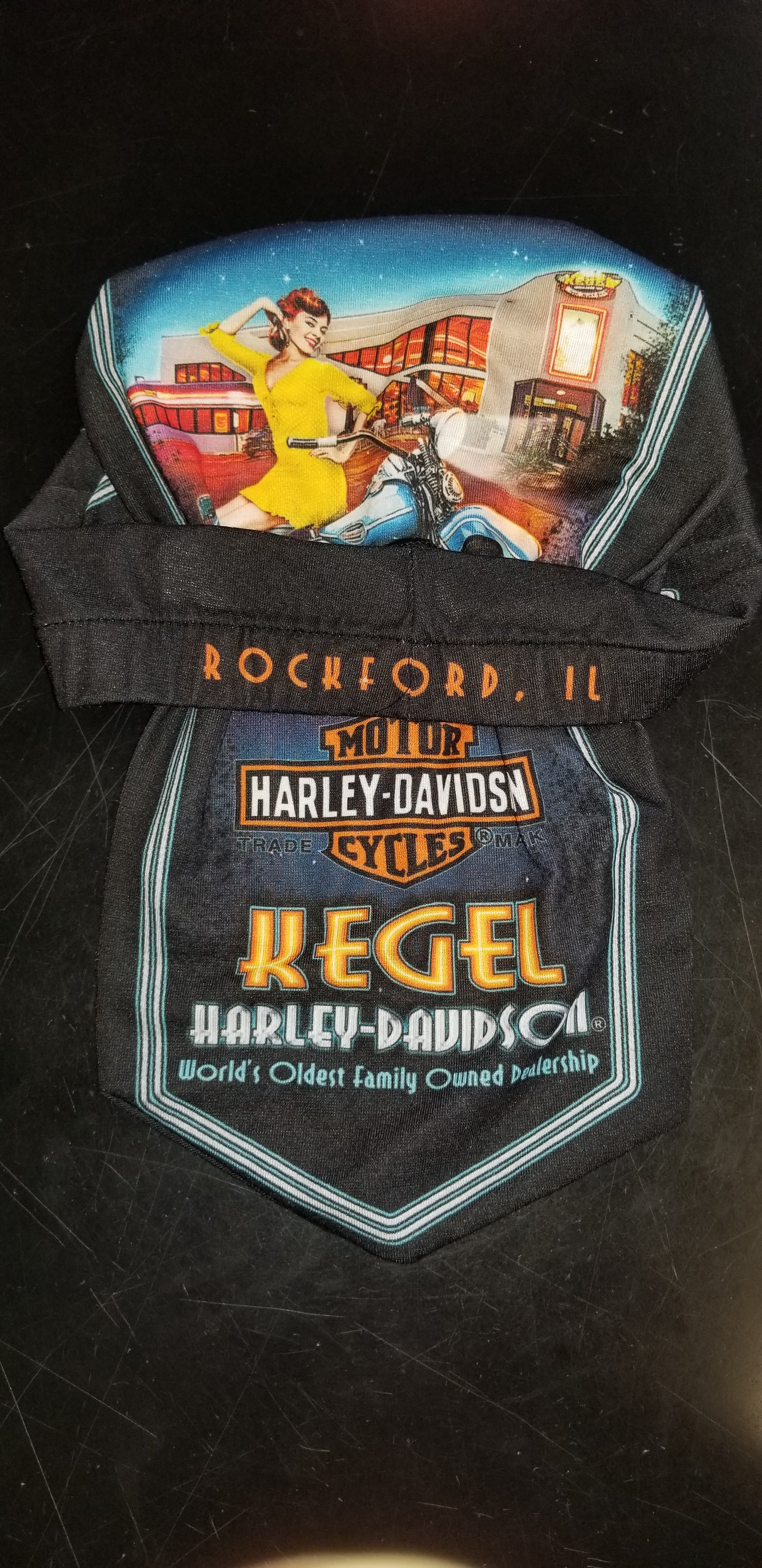 The Kegel "Diner Girl" Speed Sock features fun graphics and helps keep your head safe from the elements while riding! The elastic band stretches to fit while also securing it.