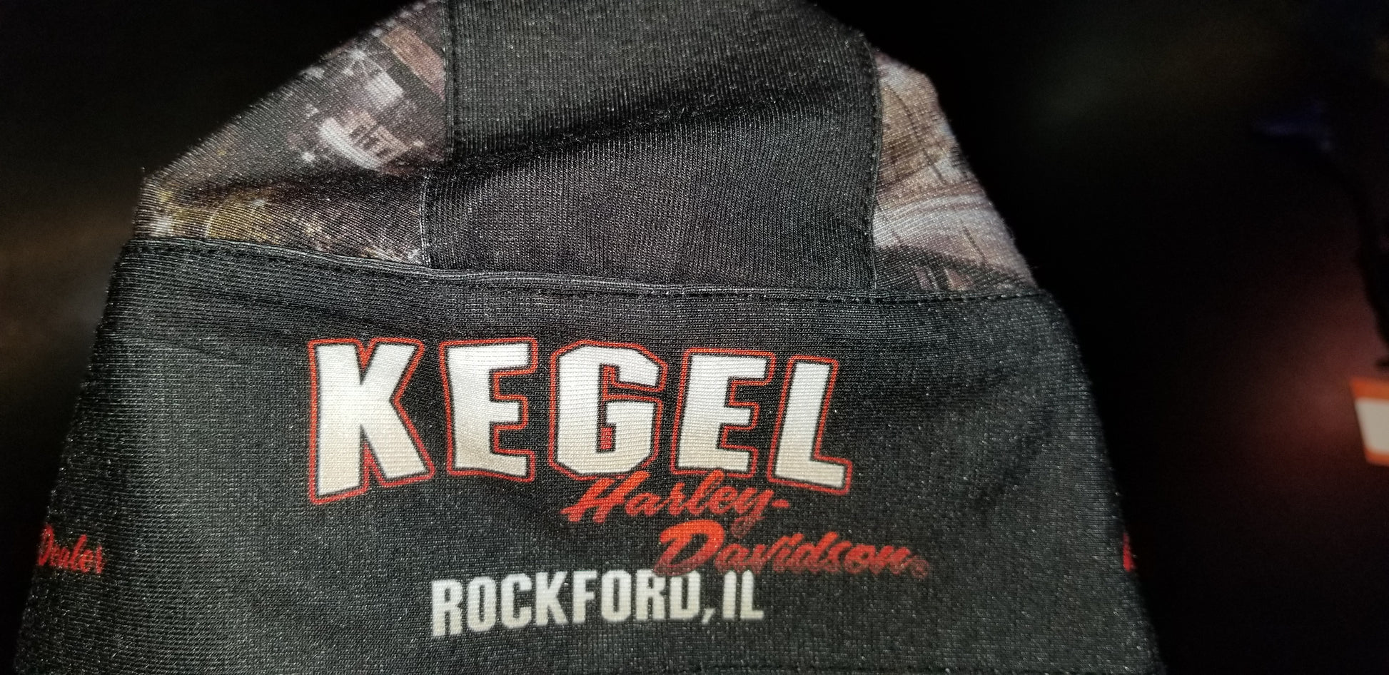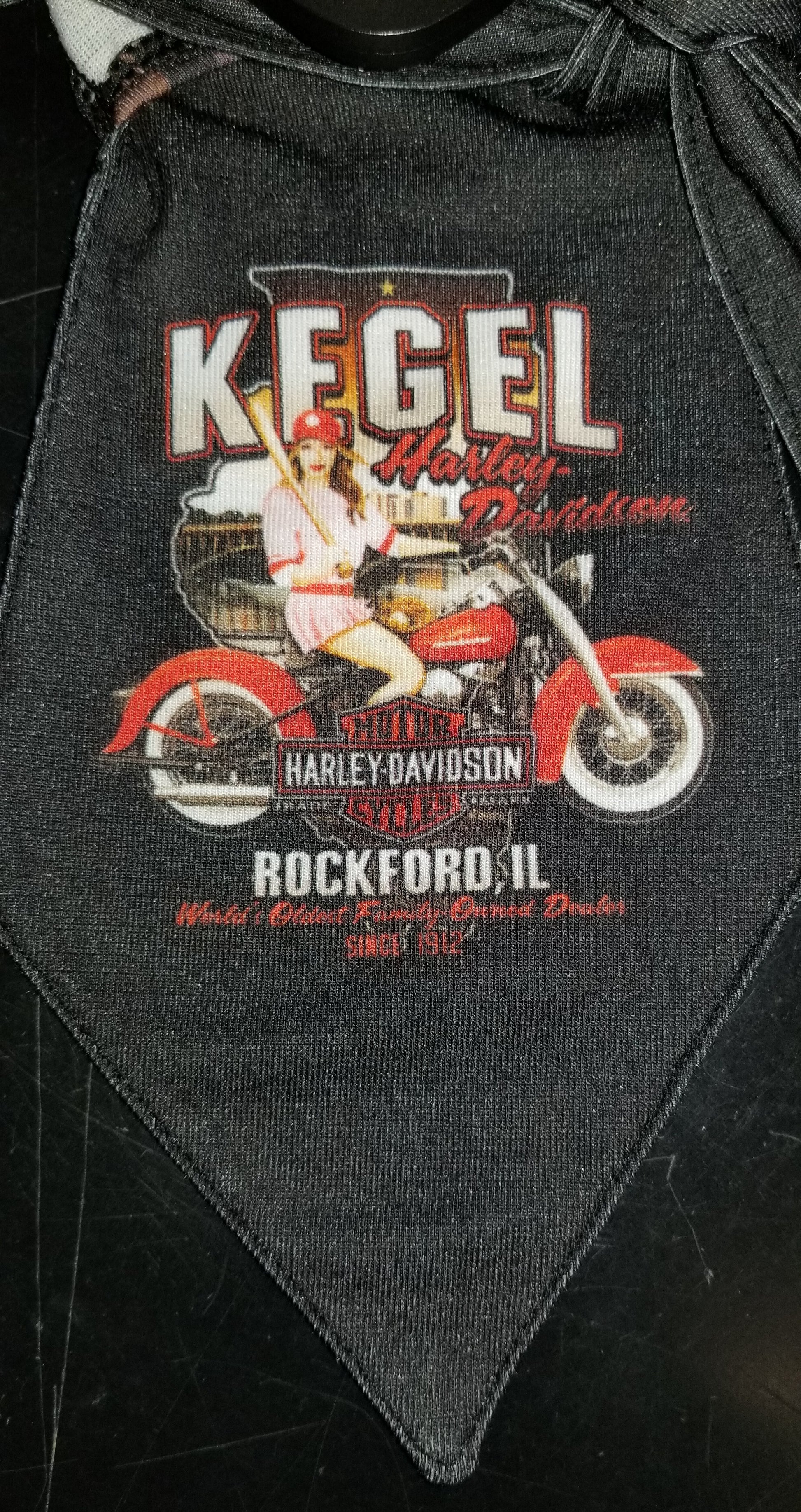 This headwrap/durag features fun graphics, including the Kegel HD Rockford Peach pinup, the Bar and Shield logo, and the city skyline. Adjustable tie in back helps keep it secure on your head, blocking out harmful elements while you ride.