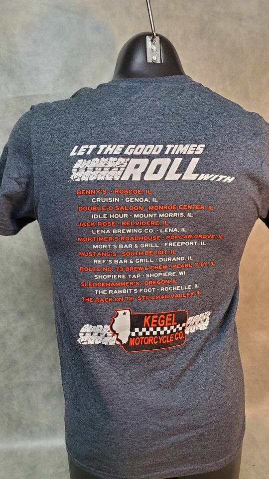 Featuring the Summer Tour '23 logo on the front and all the participating local stops on the back, this short-sleeve tee is a 50/50 cotton/poly blend, made in El Salvador but printed locally!