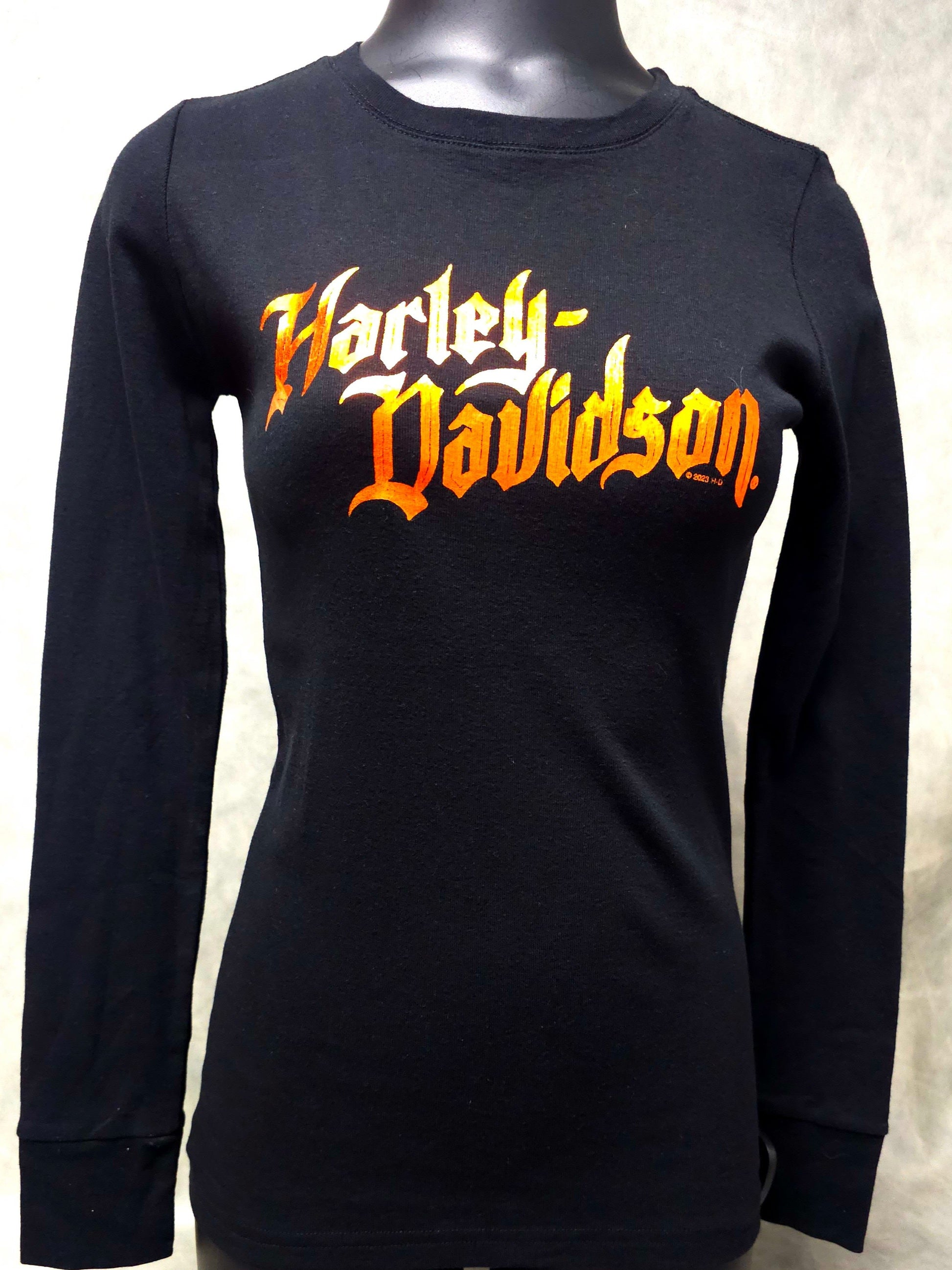 Introducing our Women's Long Sleeve "HD Grunge Goth" shirt. Made of 100% cotton, this shirt features the iconic Harley Davidson logo on the back. Perfect for any fan and a great way to show your love for the brand. Get yours today!